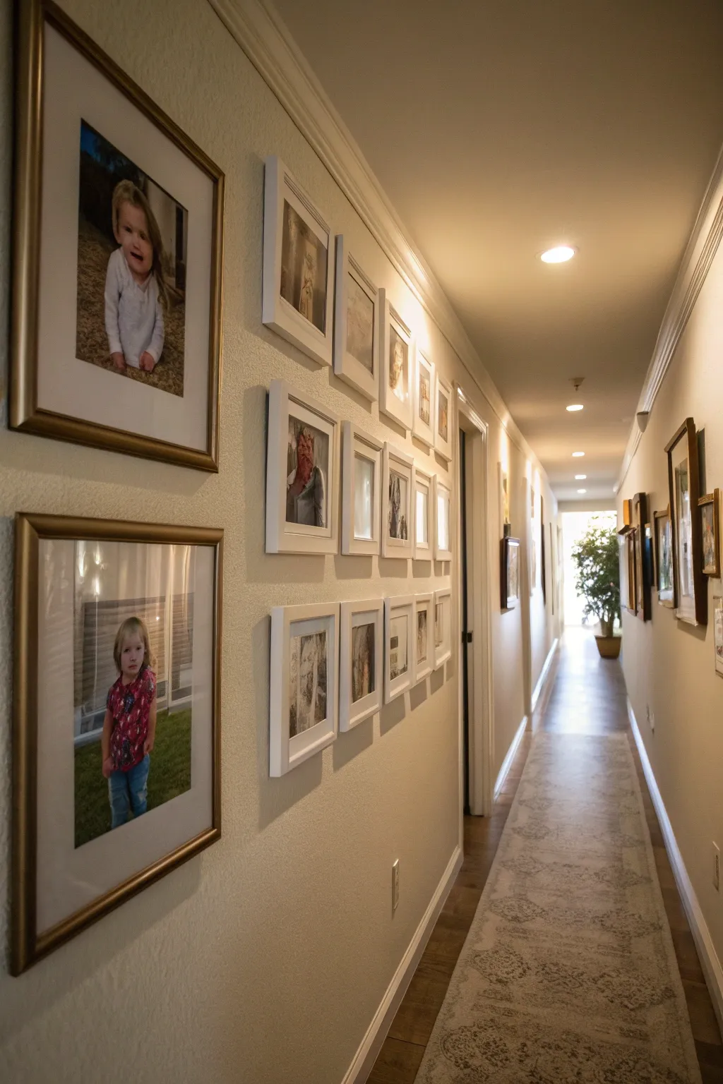Design a timeline wall with frames to showcase life’s journey. This idea has been a hit for capturing family history in hallways.