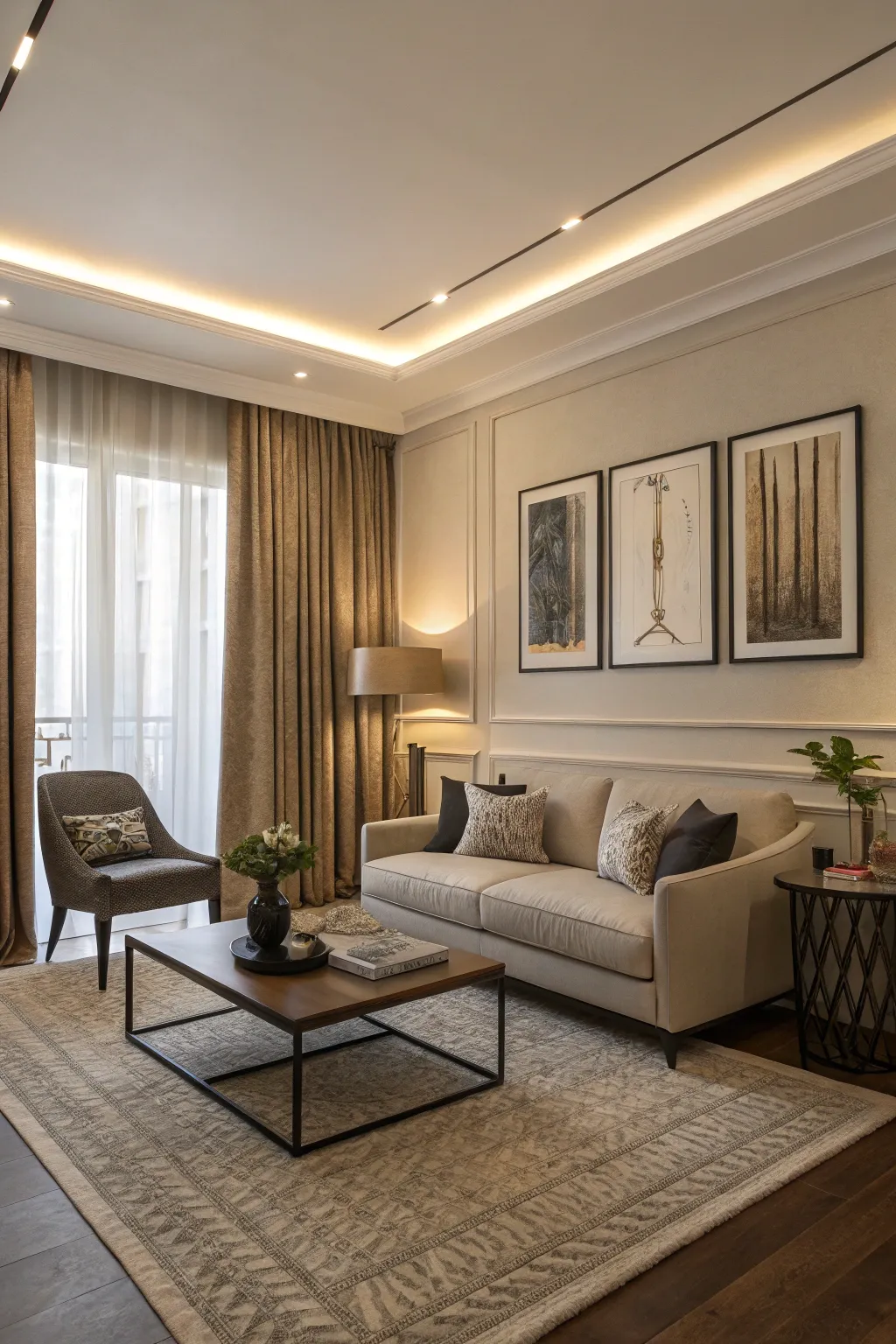 Curtains in understated hues are an excellent choice to ensure your living area feels bright and spacious. I’ve noticed that gentle shades of gray and beige integrate effortlessly with almost any decorating theme.