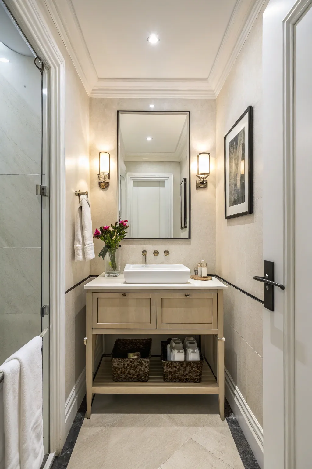 • Sophisticated Wall Mirror: Refine your bathroom using a sophisticated mirror, injecting depth and style instantly.