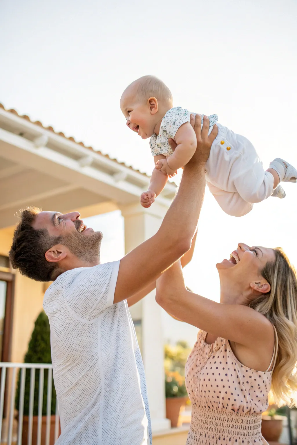 Capture playful instances such as lifting your baby in the air. These spontaneous shots are bursting with delight and spontaneity, always bringing a smile to my face.