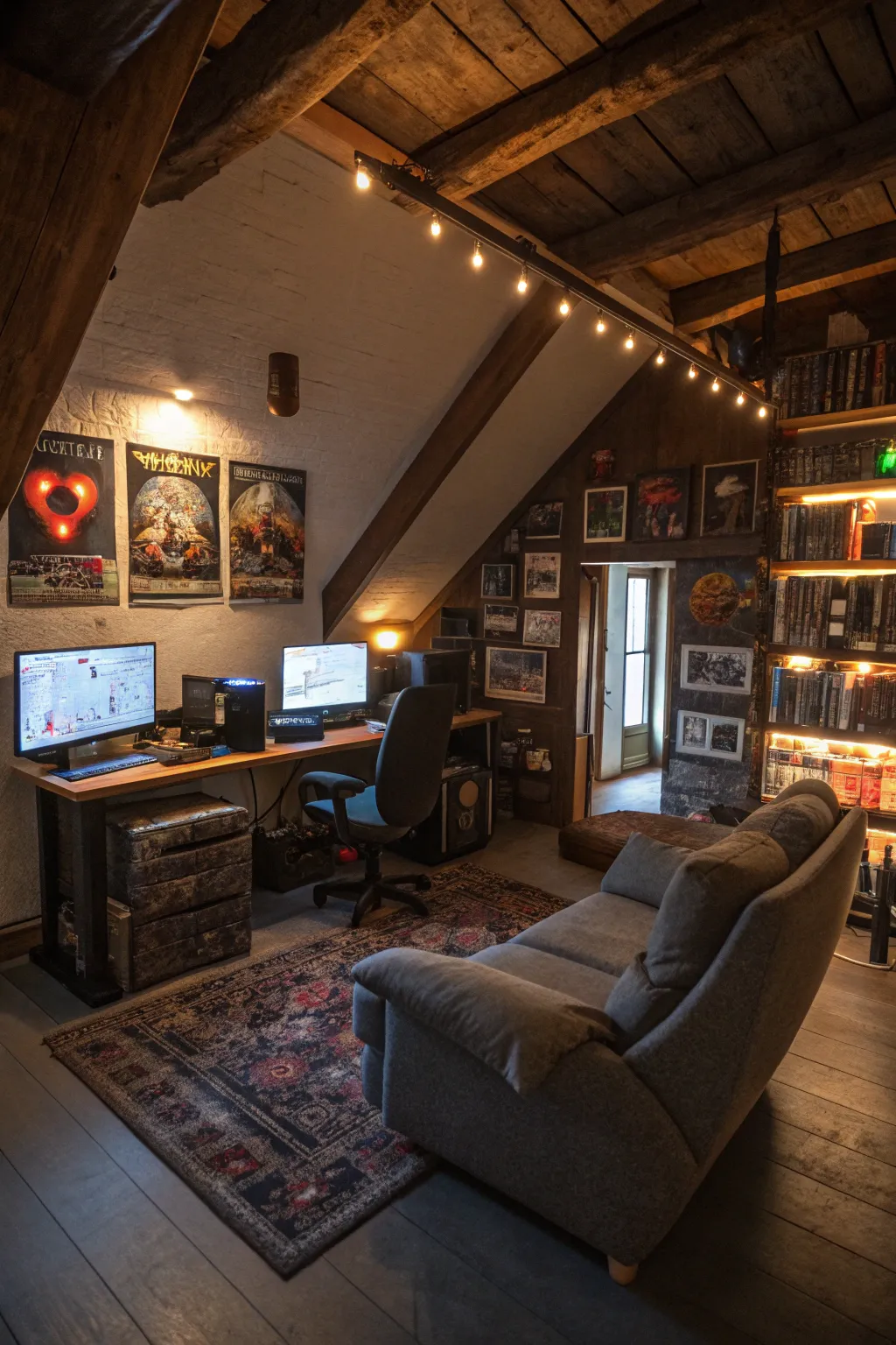 Redesign an attic into exclusive gaming quarters. The solitude and atypical layout present a perfect gaming sanctuary.