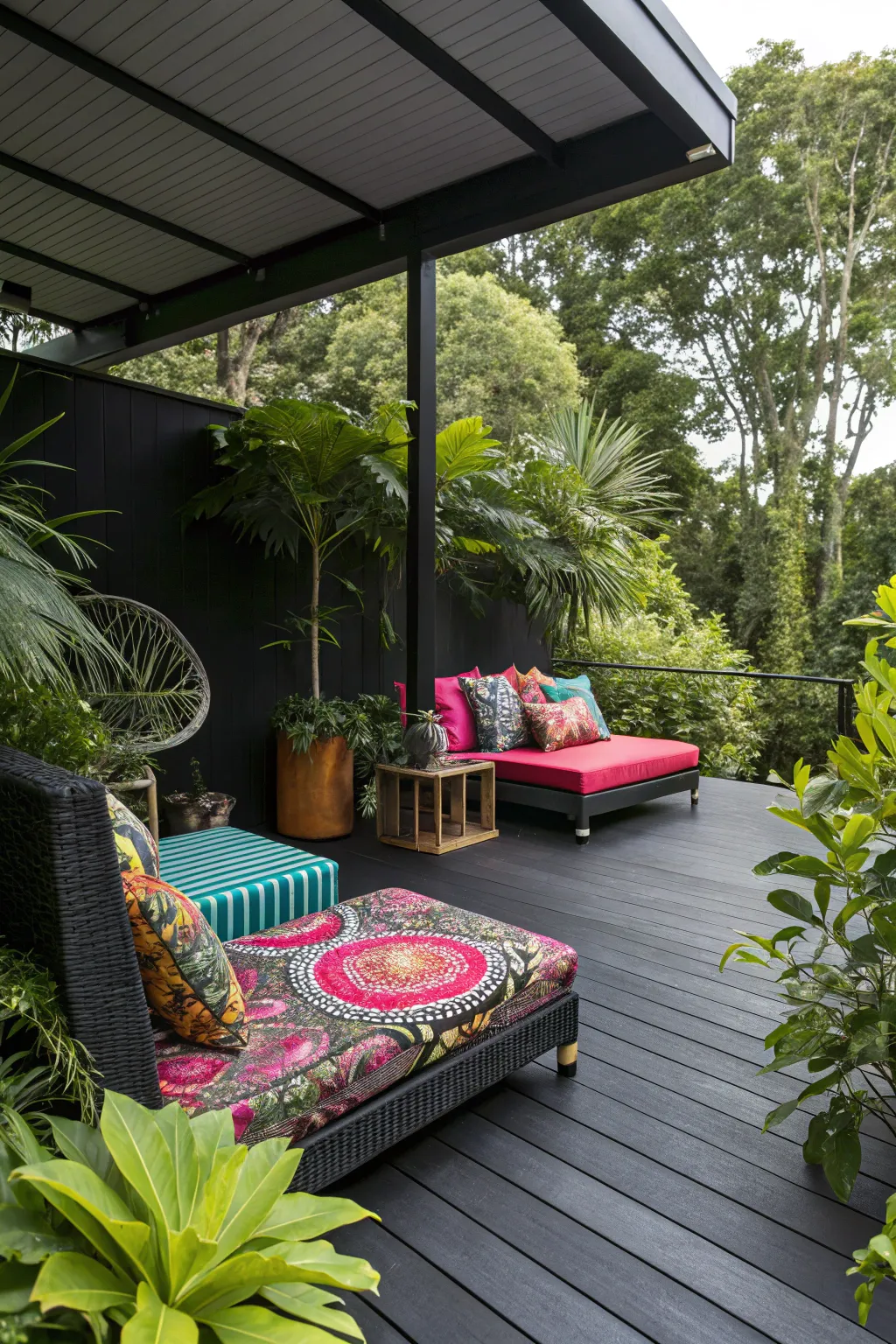 If you’re feeling adventurous, a vivid bloom accent can bring a playful touch to your deck. It’s a lively color that never fails to lift my spirits. The space is so full of life.