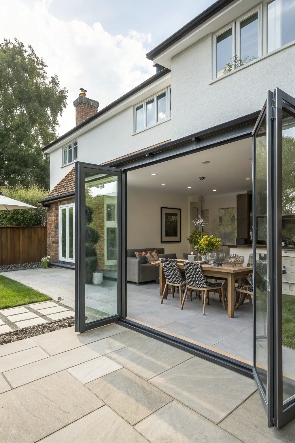 Dual-fold panels reign supreme for sculpting a sprawling expanse, fluidly uniting your indoor and outdoor zones. It thrills me to witness how they morph my buddy’s dwelling into an entertainer’s haven during summer shindigs.