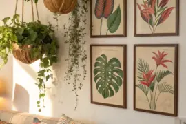 Position a display arrangement over furniture such as a bench or lounge to attract attention. It’s a splendid method to capitalize on vertical space, and I adore how it uplifts my living room’s appearance.