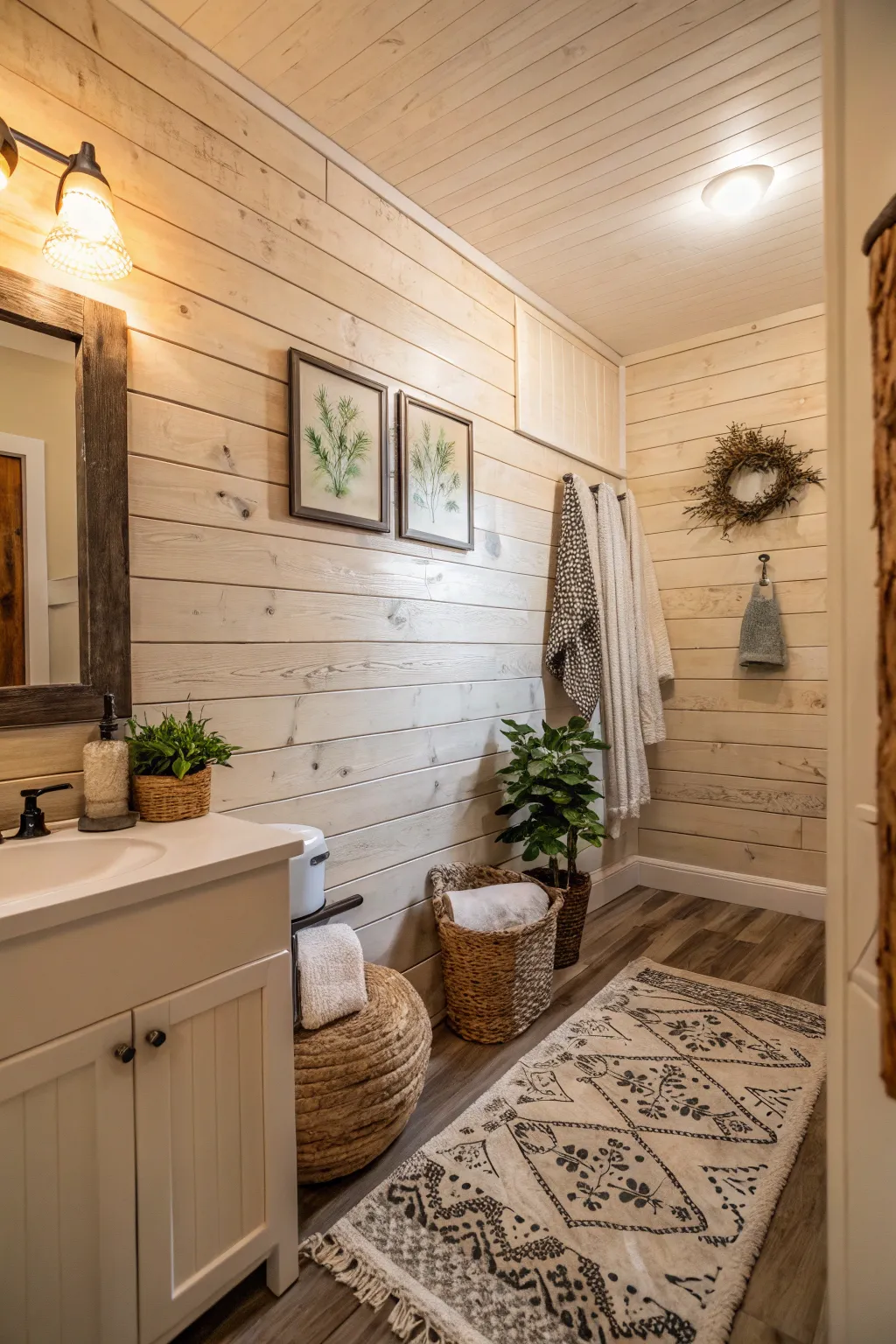 - Apply Shiplap Wallpaper: Revamp your bathroom using simple shiplap wallpaper, improving depth and style instantly.