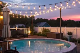 String lights or solar-powered lanterns can easily establish a cozy mood around your pool. In my backyard, these transformed the space into a captivating escape in the evenings.