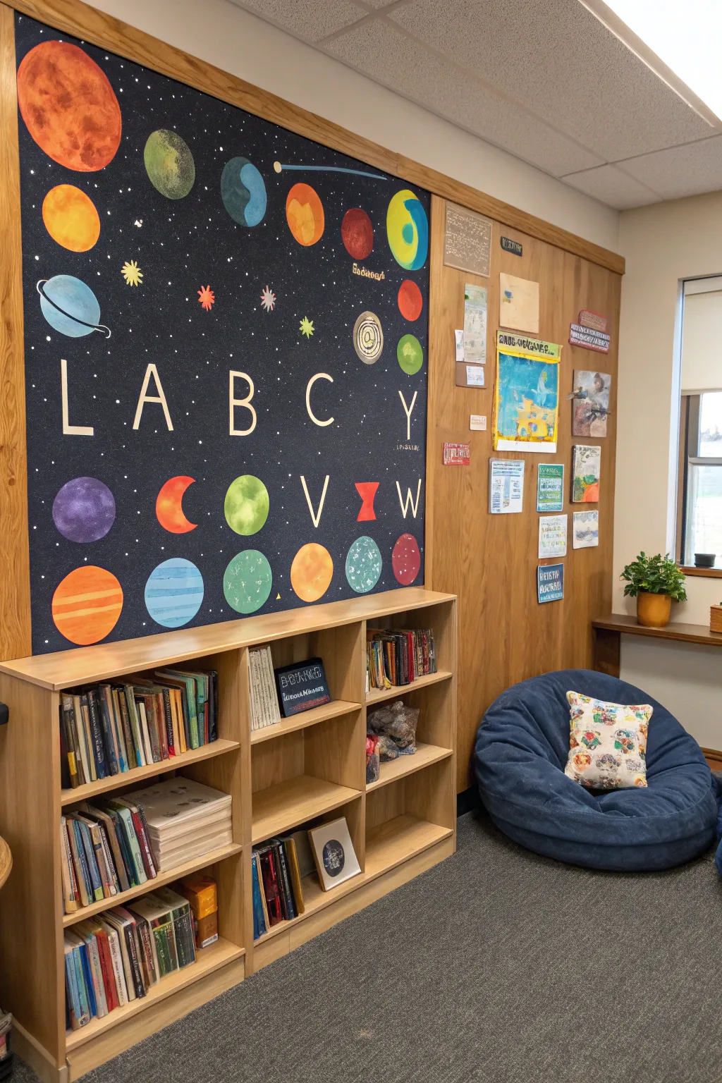 • Cosmic-Themed Bulletin Board Collection: Elevate your endeavor through a primed cosmic-themed bulletin board collection showcasing globes and constellations.
