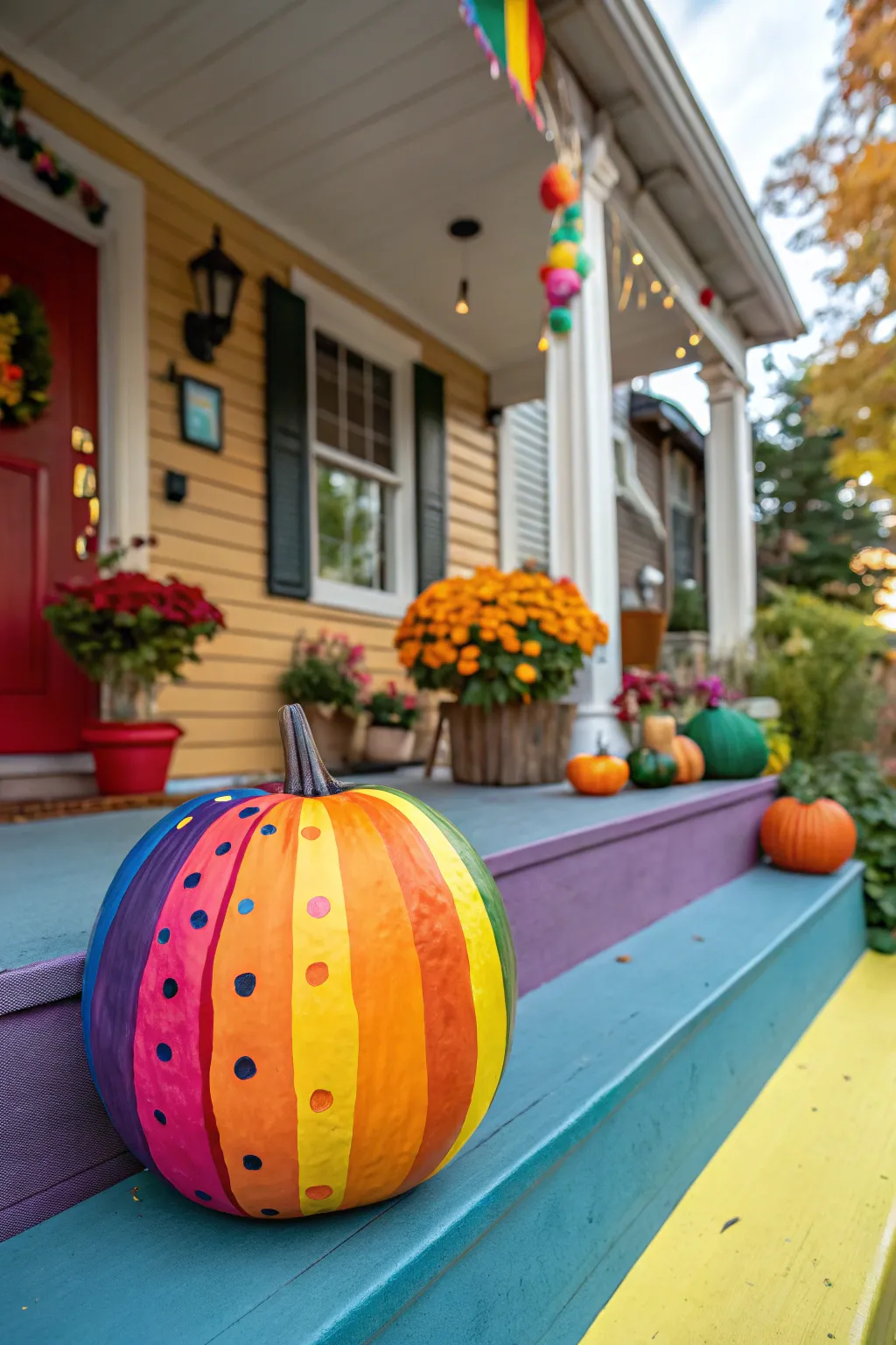 Welcome a spectrum of color using a rainbow pumpkin. Paint each part of the pumpkin in a different brilliant shade, forming a vibrant piece destined to be noticed.