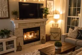 • Stone veneer fireplace surround: Enhance your living room ambiance with a natural stone veneer fireplace surround.