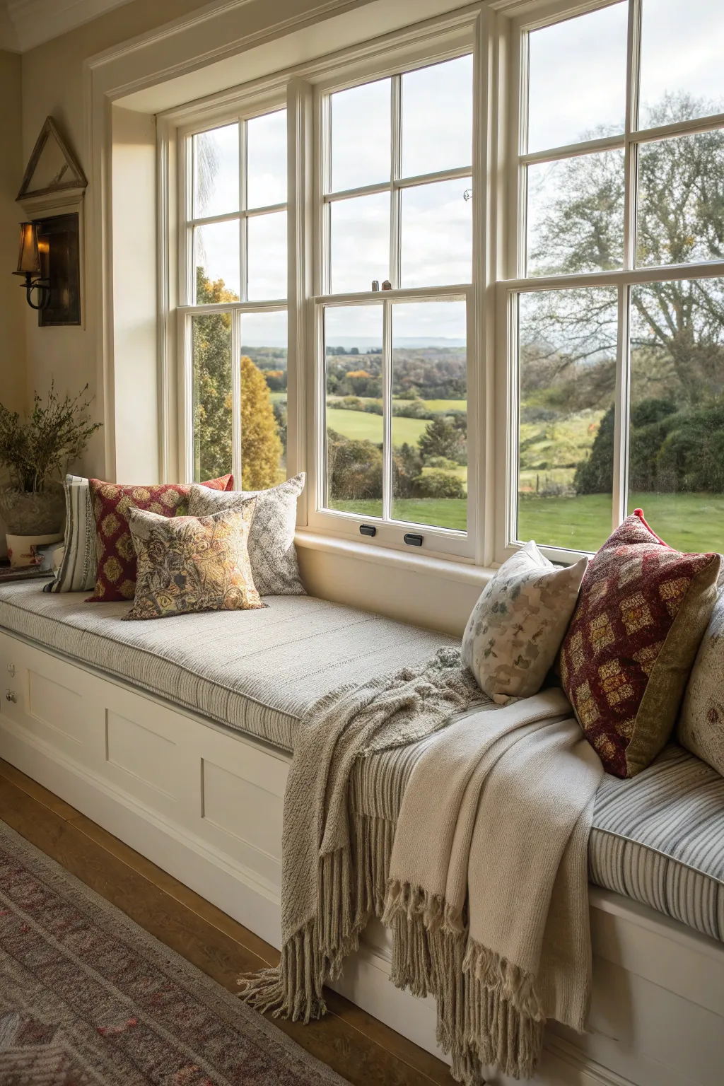 - Snuggle-Up Blanket: Boost the coziness and flair by draping a soft, snuggle-up blanket over your window seat.