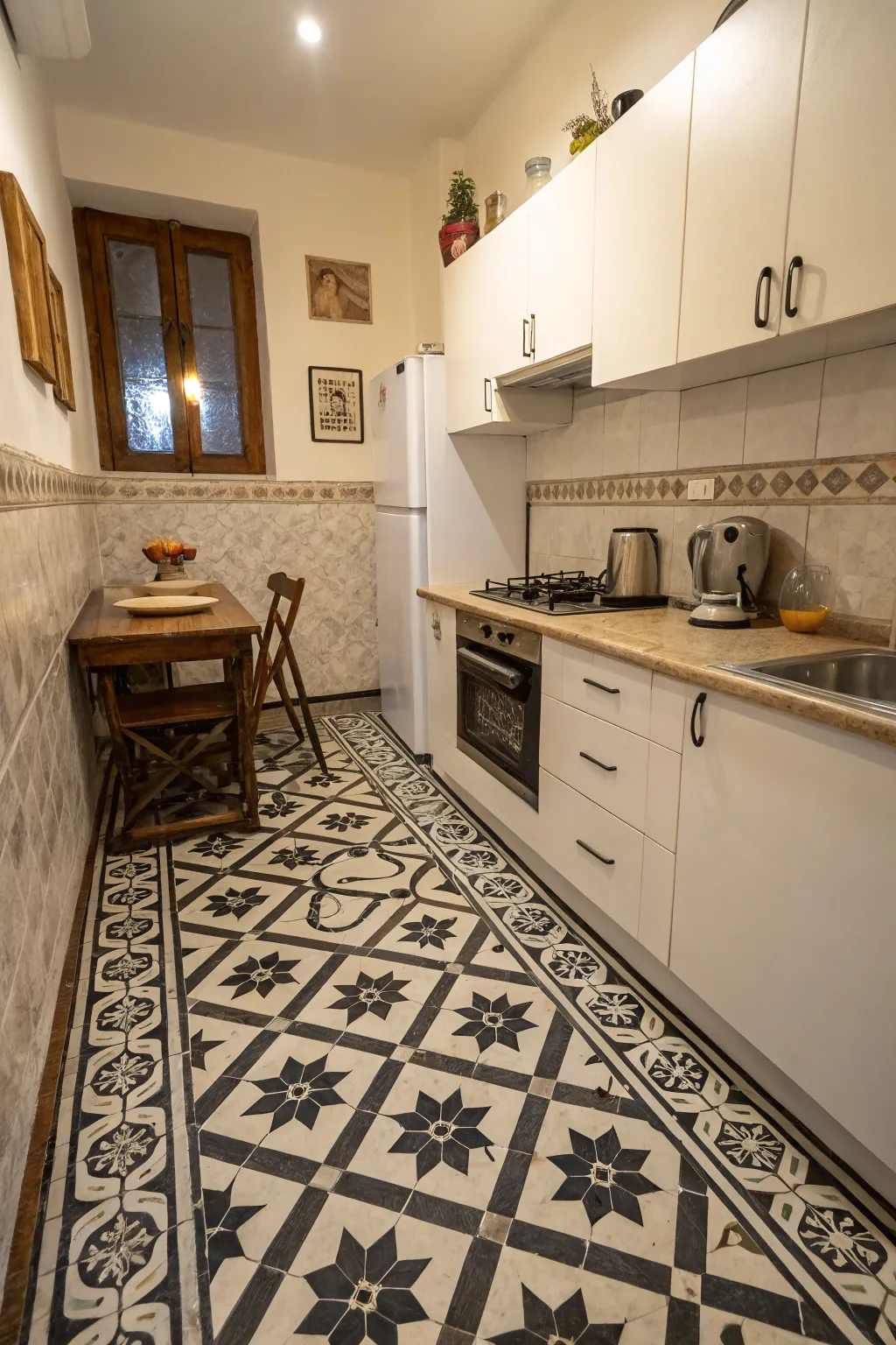 Don’t be afraid to use striking, patterned tiles to make a statement. I’ve noticed that striking designs can turn a tiny kitchen into a creative area that sparks discussion.
