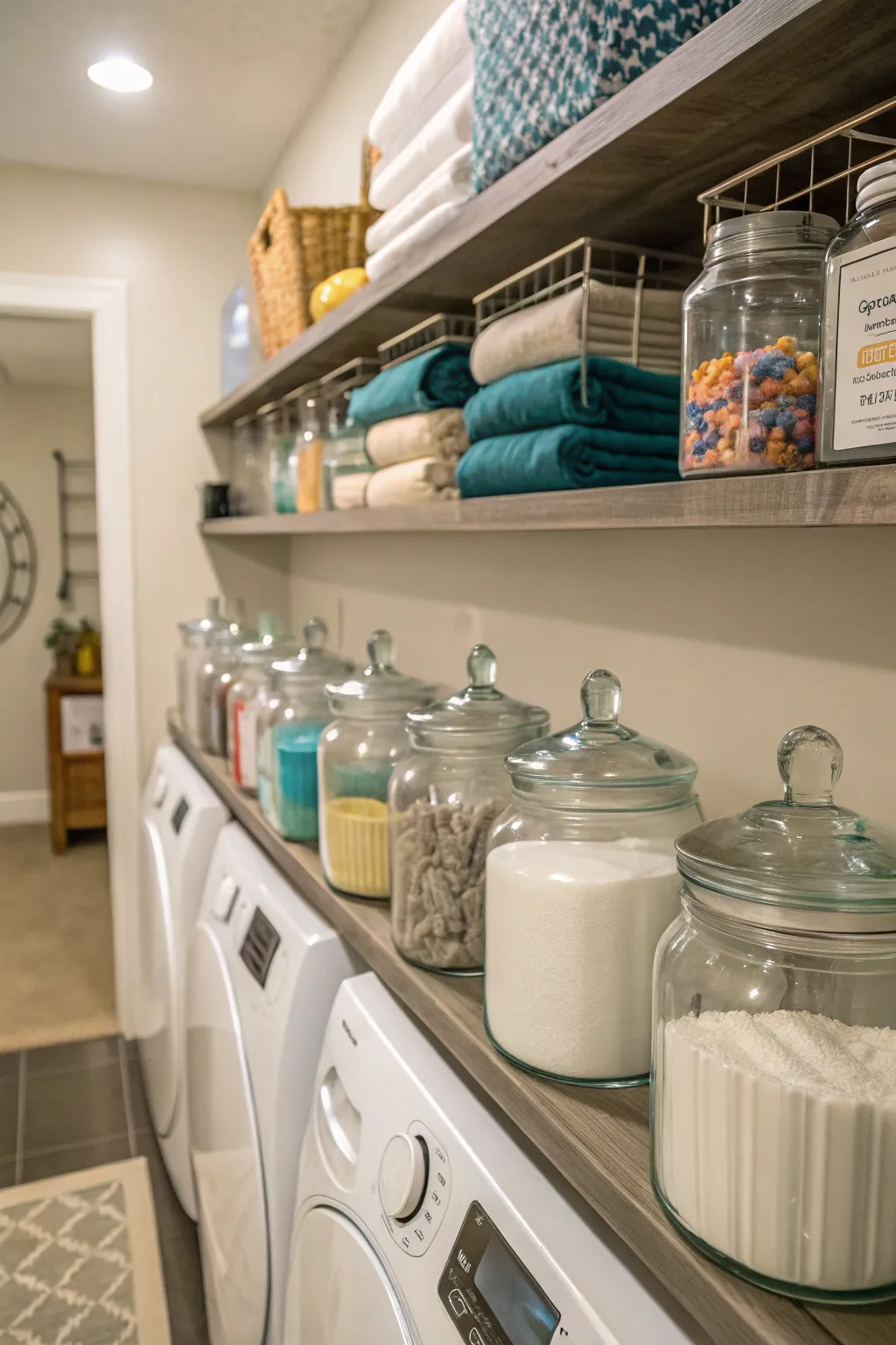 - Kitchen Glass Jars: Improve the aesthetic of your utility area using jars perfect for accessible organizing.