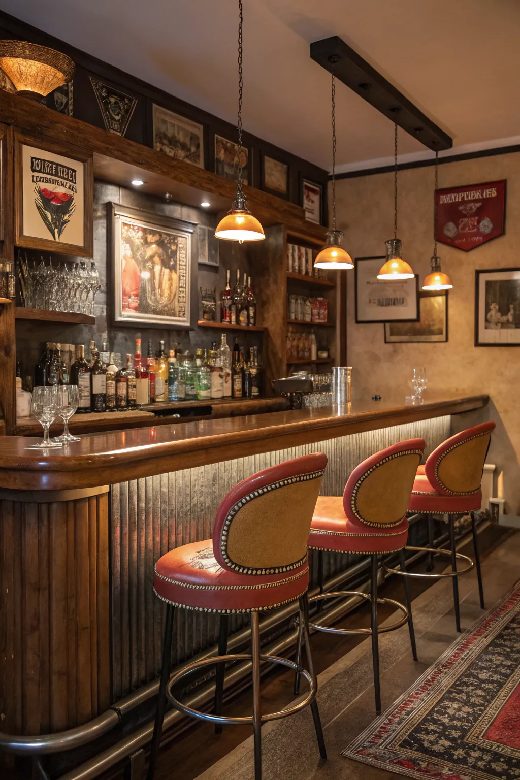 - Nostalgic Bar Chairs: Add nostalgic bar chairs for both comfort and style, completing your themed bar setup.