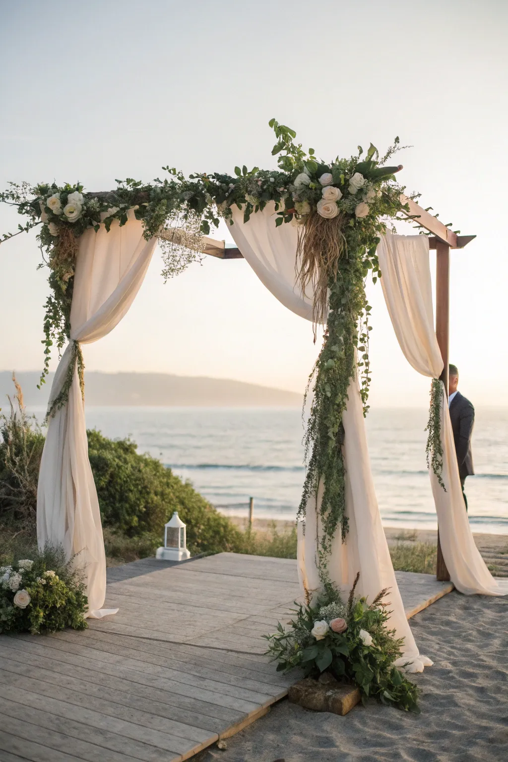 A simple celebration arch, embellished with fabric and foliage, offers a stunning focal element. It’s an accessible DIY project that exudes absolute beauty.