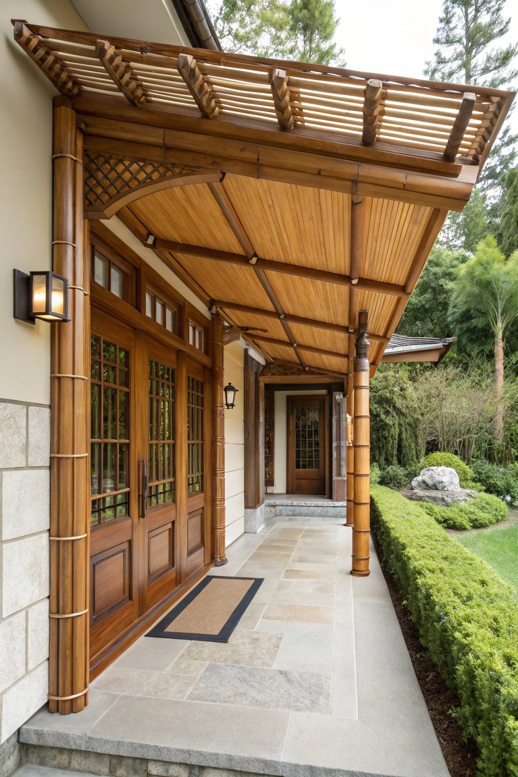 - Bamboo Ornamental Screens: Enhance your awning with bamboo panels for a serene, Asian-inspired entrance.